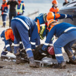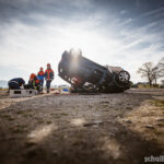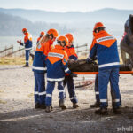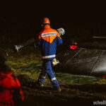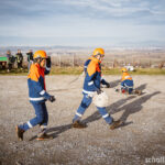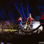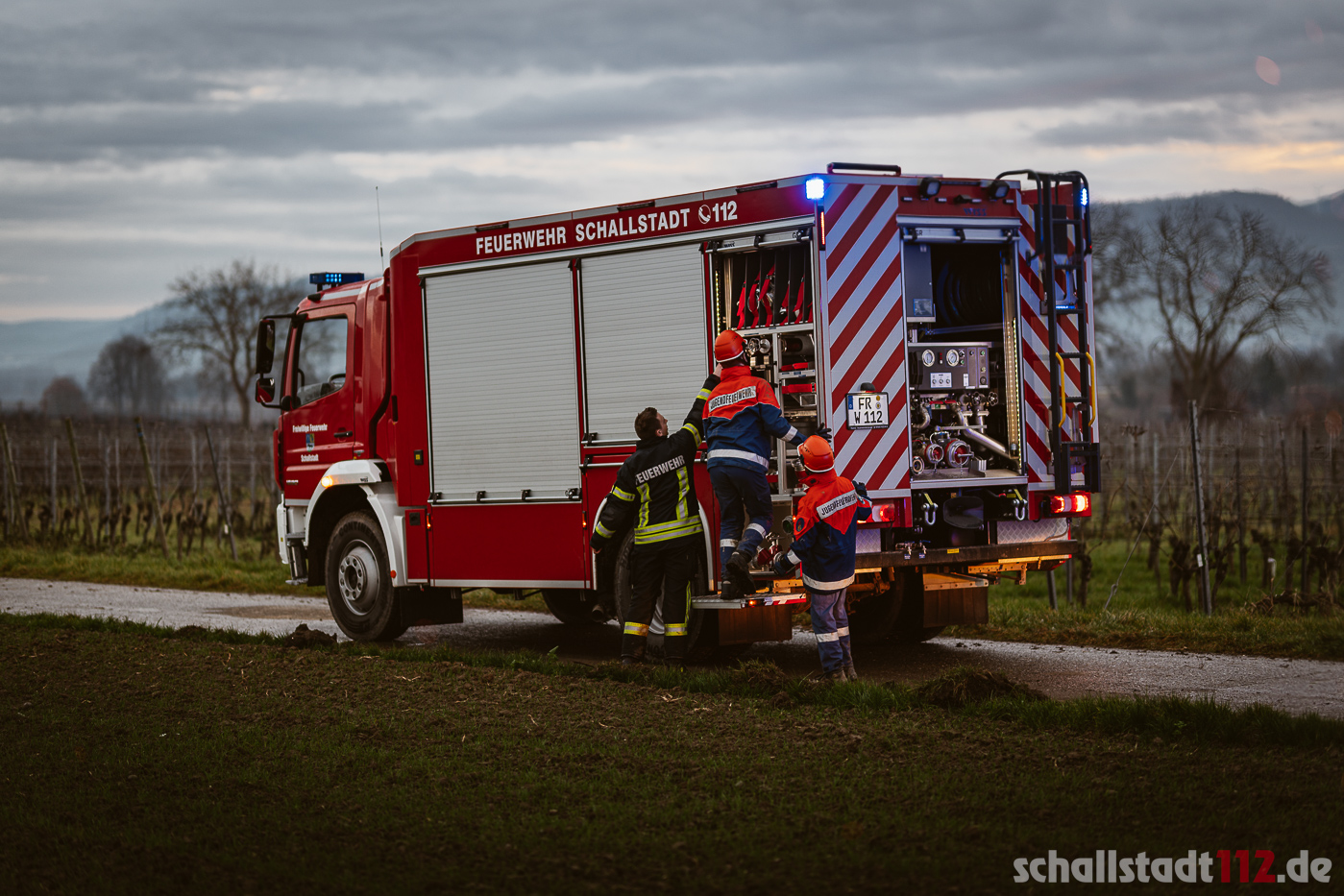 - Die „Luftlinie-Challenge“: Eine besonders harte Nuss war die Rettung zweier Verletzter (schwere Übungspuppen). Vom Friedhof Mengen bis zum Gerätehaus Schallstadt mussten über zwei Kilometer Strecke überwunden werden. Die Schwierigkeit: Es galt, strikt die Luftlinie einzuhalten! Querfeldein, über Stock und Stein, durch Hänge und sogar über Gewässer kämpfte sich die Gruppe mit den Verletzten ans Ziel.