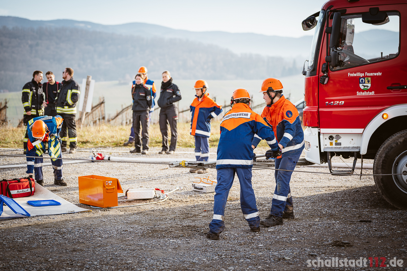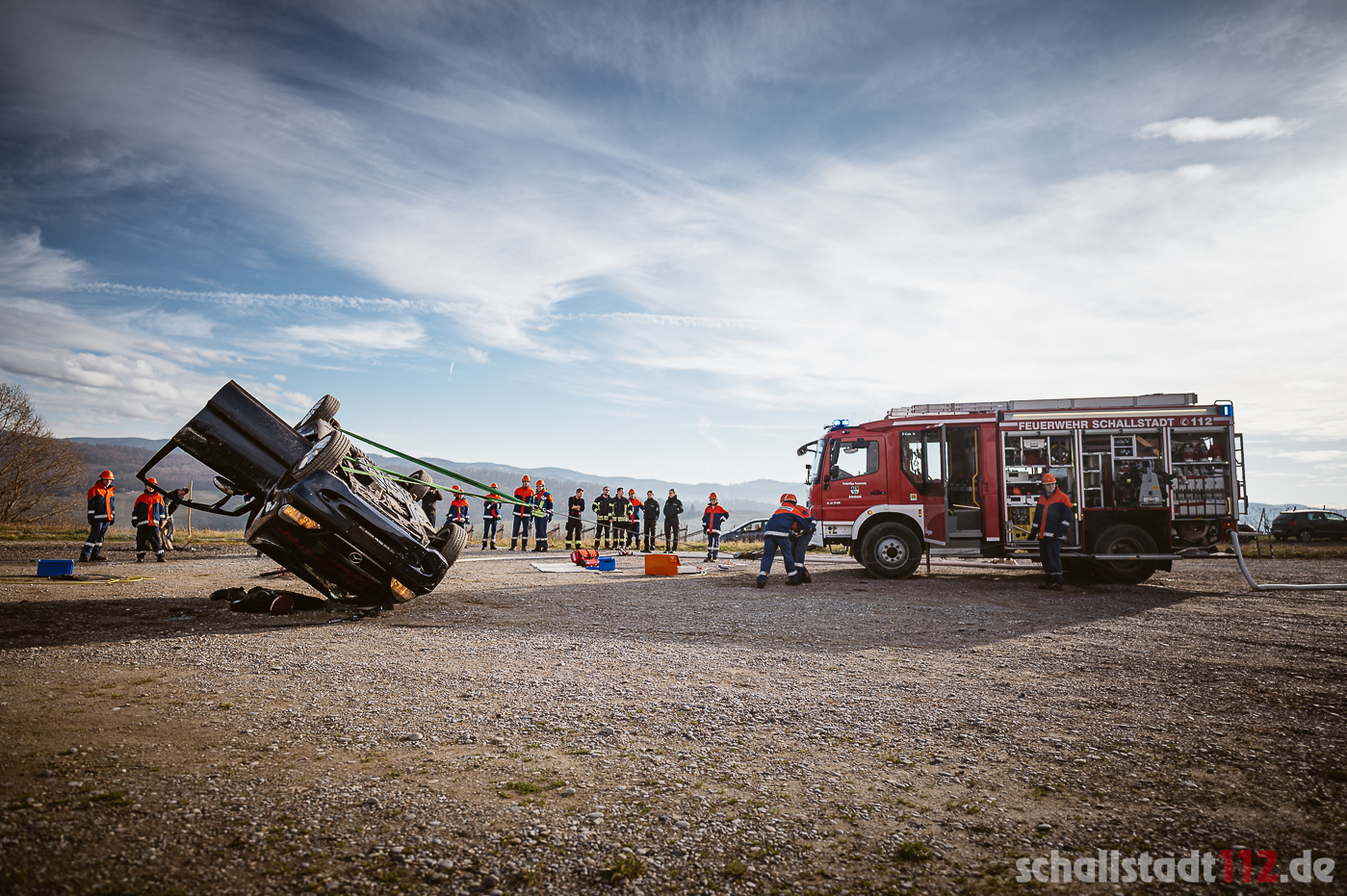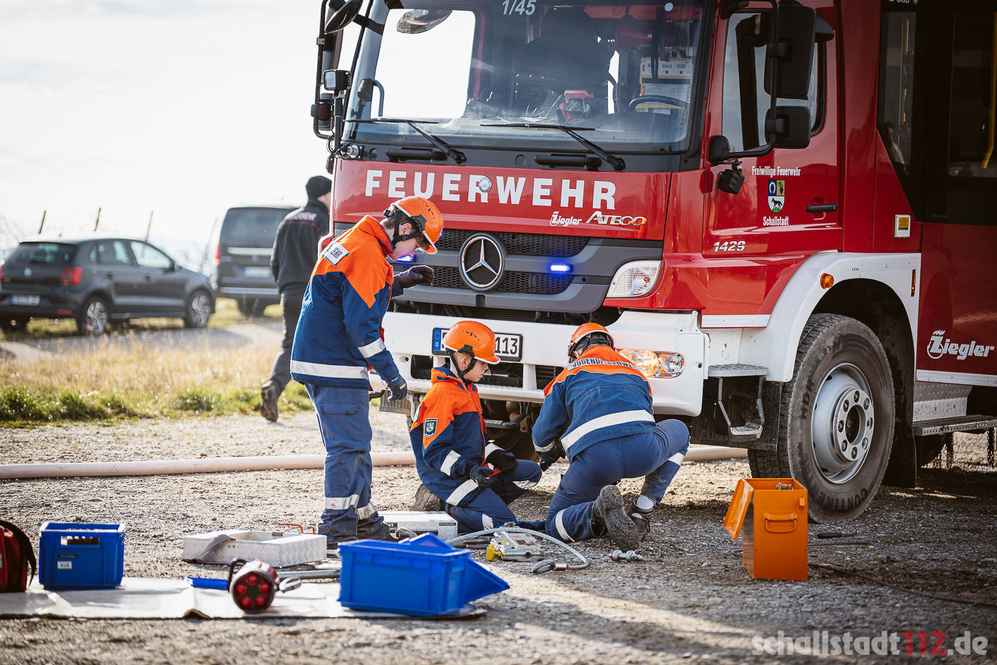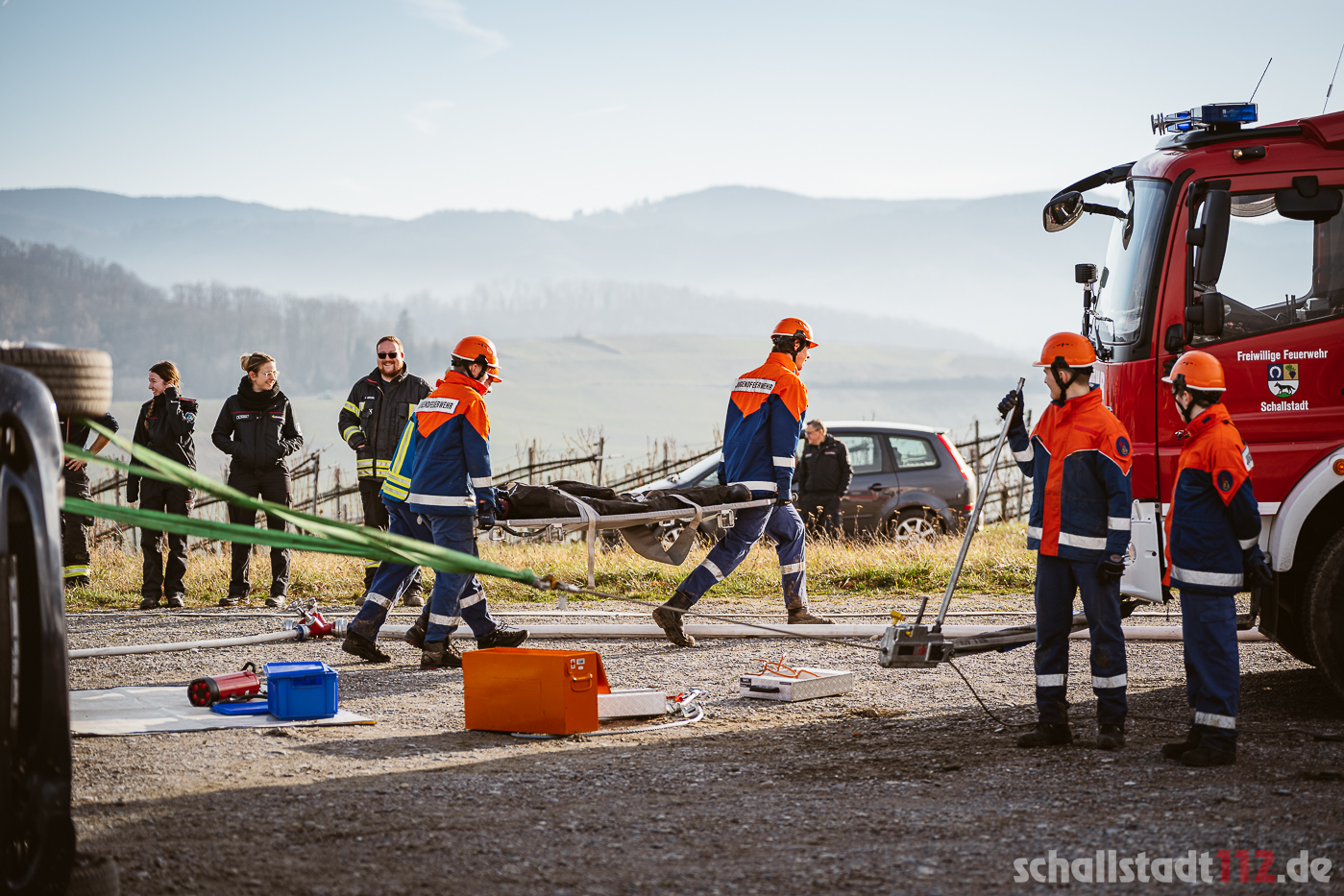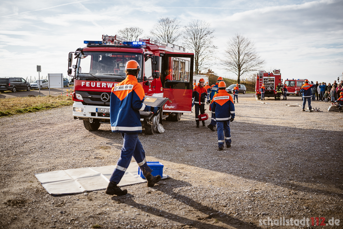 Den krönenden Abschluss bildete am Samstagmittag um 12:00 Uhr eine große Abschlussübung auf dem Batzenberg. Vor den Augen vieler Eltern und Angehöriger galt es, ein komplexes Unfall- und Brandszenario zu bewältigen.
