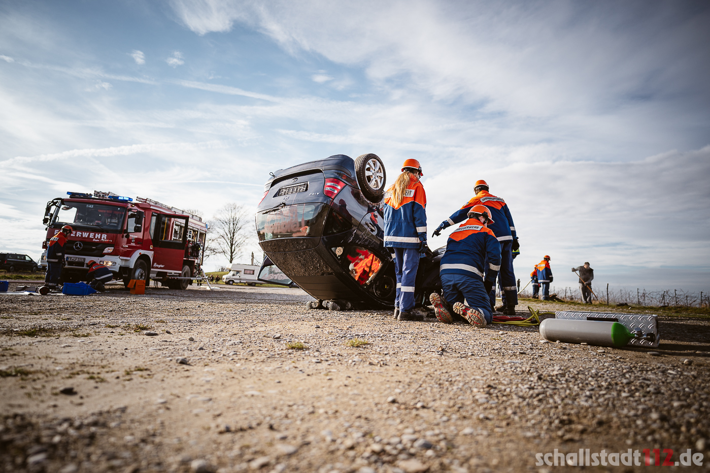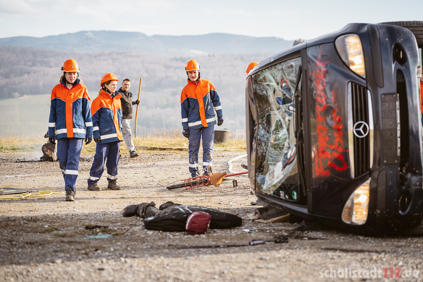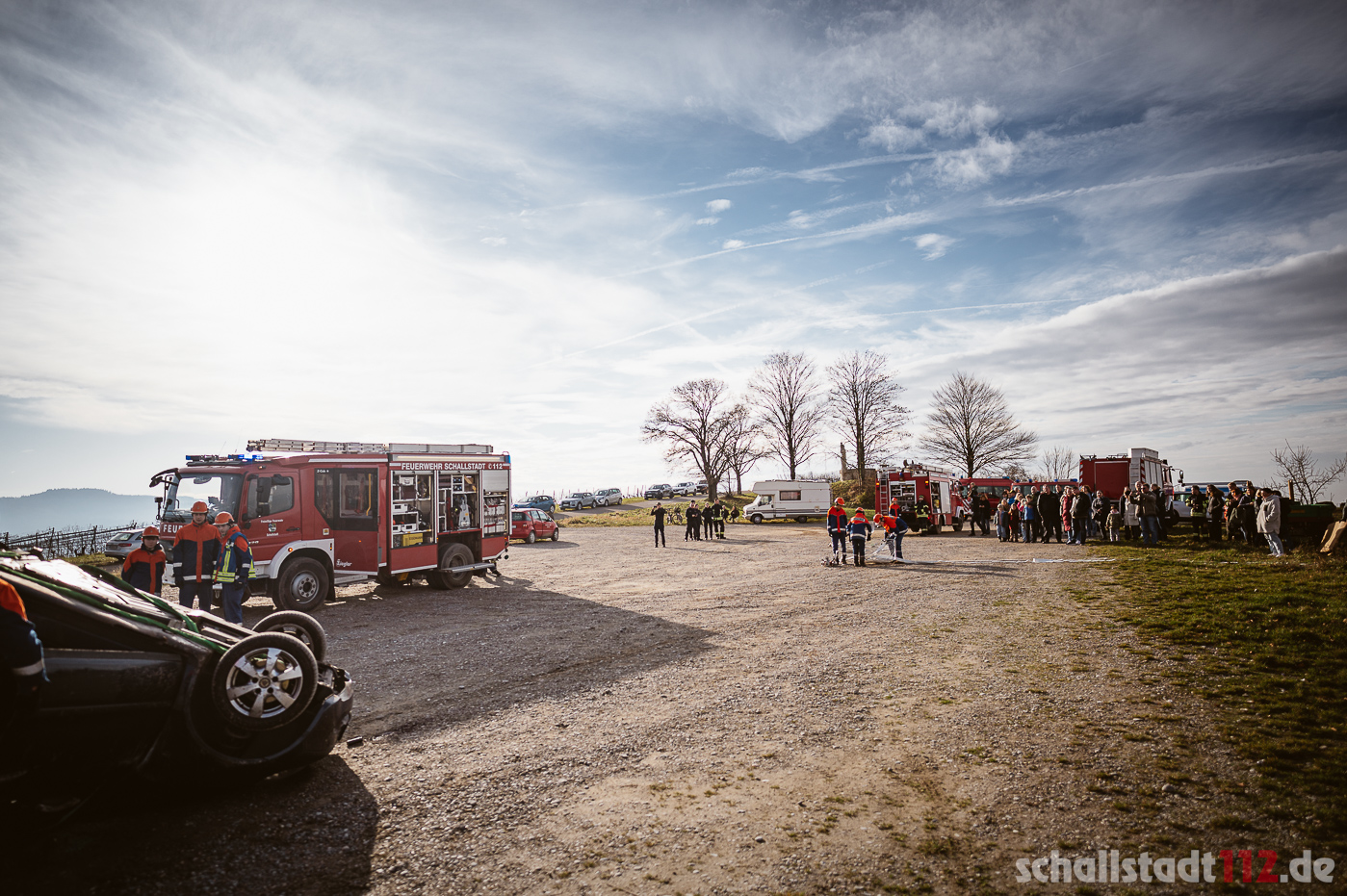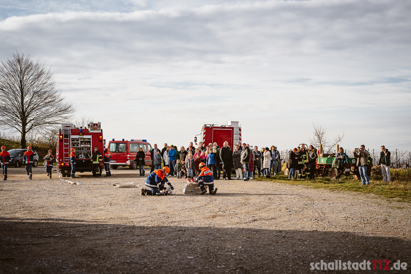 Den krönenden Abschluss bildete am Samstagmittag um 12:00 Uhr eine große Abschlussübung auf dem Batzenberg. Vor den Augen vieler Eltern und Angehöriger galt es, ein komplexes Unfall- und Brandszenario zu bewältigen.