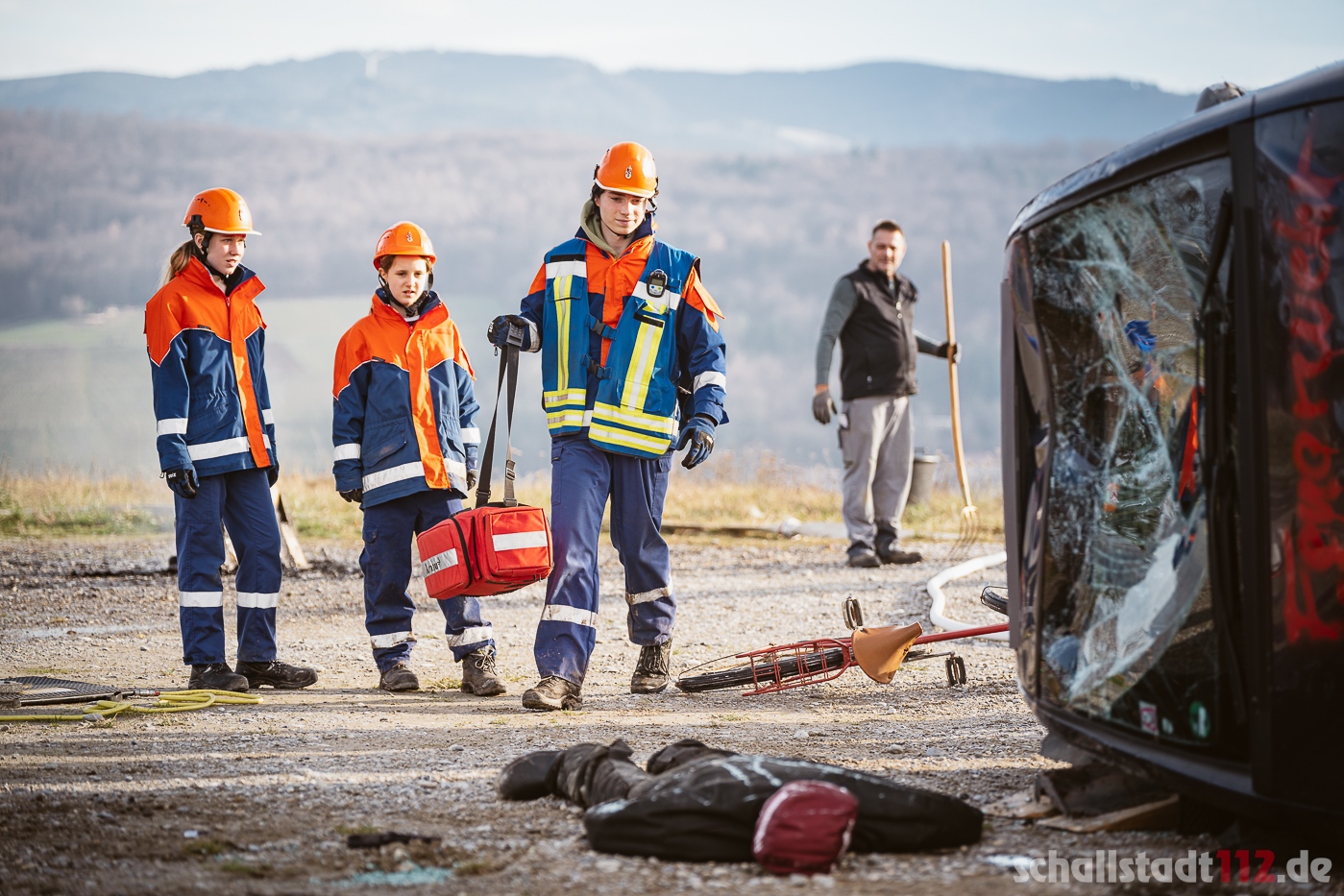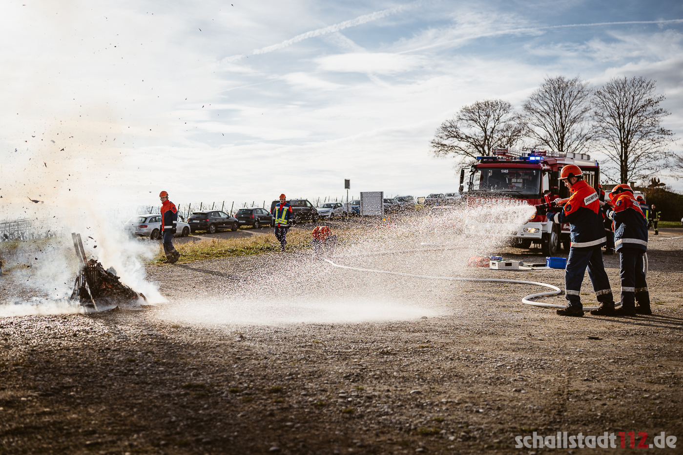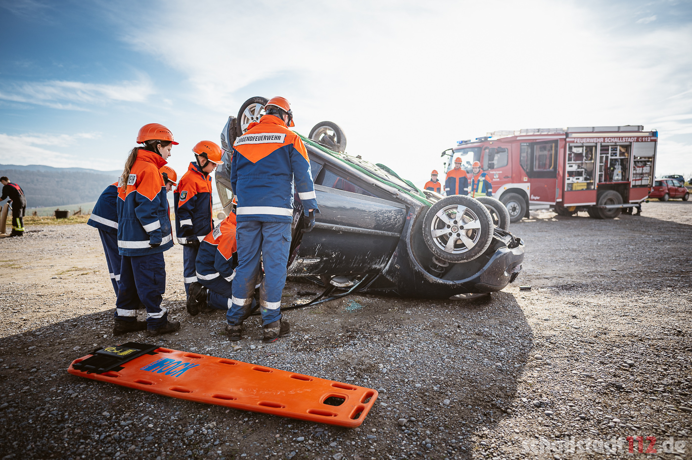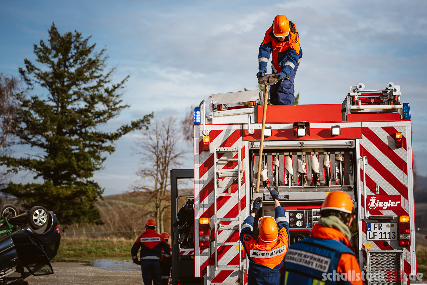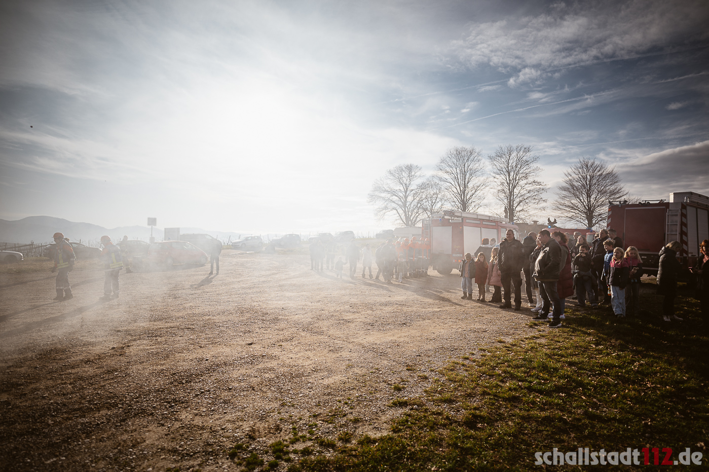 Den krönenden Abschluss bildete am Samstagmittag um 12:00 Uhr eine große Abschlussübung auf dem Batzenberg. Vor den Augen vieler Eltern und Angehöriger galt es, ein komplexes Unfall- und Brandszenario zu bewältigen.
