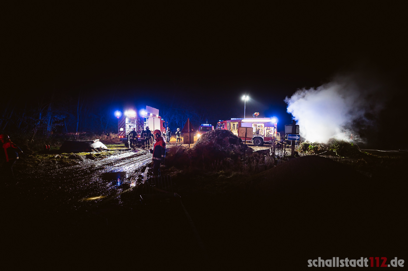 - Geisterstunde auf der Deponie: Punkt Mitternacht riss der Alarm die Jugendlichen aus dem Beinahe-Schlaf. Auf der Grünschnittdeponie brannten zwei Reisighaufen. Unter Flutlicht wurde der Löschangriff koordiniert und die Feuer schnell unter Kontrolle gebracht.