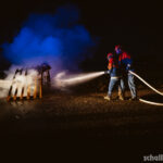 - Frühsport der anderen Art: Um 07:00 Uhr morgens war die Nacht vorbei. Brennende Paletten simulierten brennende Müllcontainer, die ein schnelles Eingreifen erforderten.