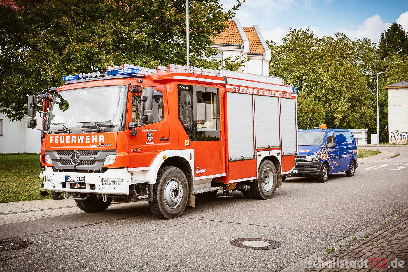 | Schallst. 1/10 (KdoW) Schallstadt 1/14 (MZF) Schallst. 1/23 (TLF3000) Schallst. 1/45 (LF20KatS) BF Freiburg Gasversorger Notdienst Polizei Rettungsdienst |