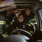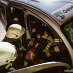 Parallel dazu übte die jeweils andere Gruppe die Rettung einer bewusstlosen Person aus einem stehenden PKW. Auch hierbei stand das sichere und schnelle Vorgehen im Vordergrund. Inklusive aller Details die zur Sicherung des Fahrzeuges und der Einsatzstelle notwendig sind.