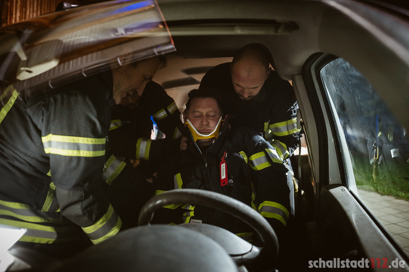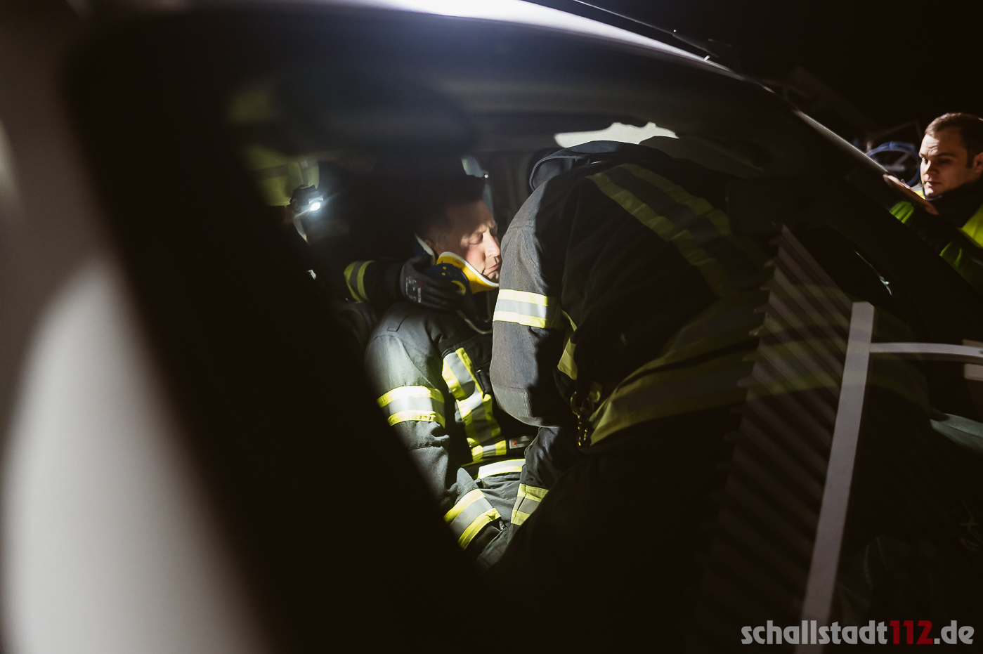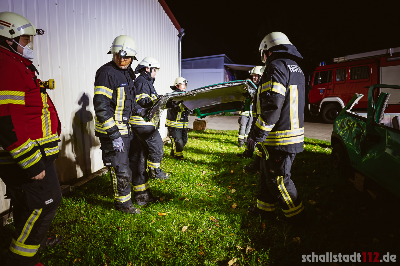Parallel dazu übte die jeweils andere Gruppe die Rettung einer bewusstlosen Person aus einem stehenden PKW. Auch hierbei stand das sichere und schnelle Vorgehen im Vordergrund. Inklusive aller Details die zur Sicherung des Fahrzeuges und der Einsatzstelle notwendig sind.