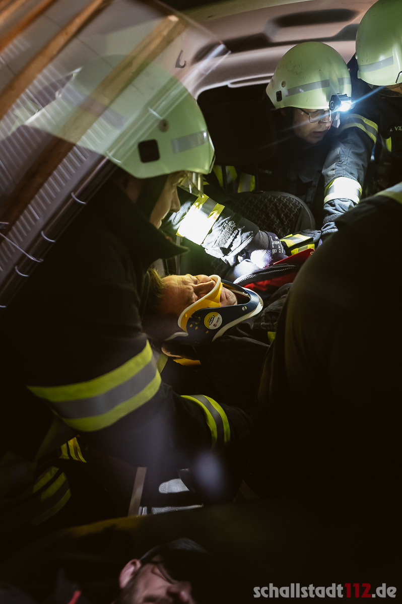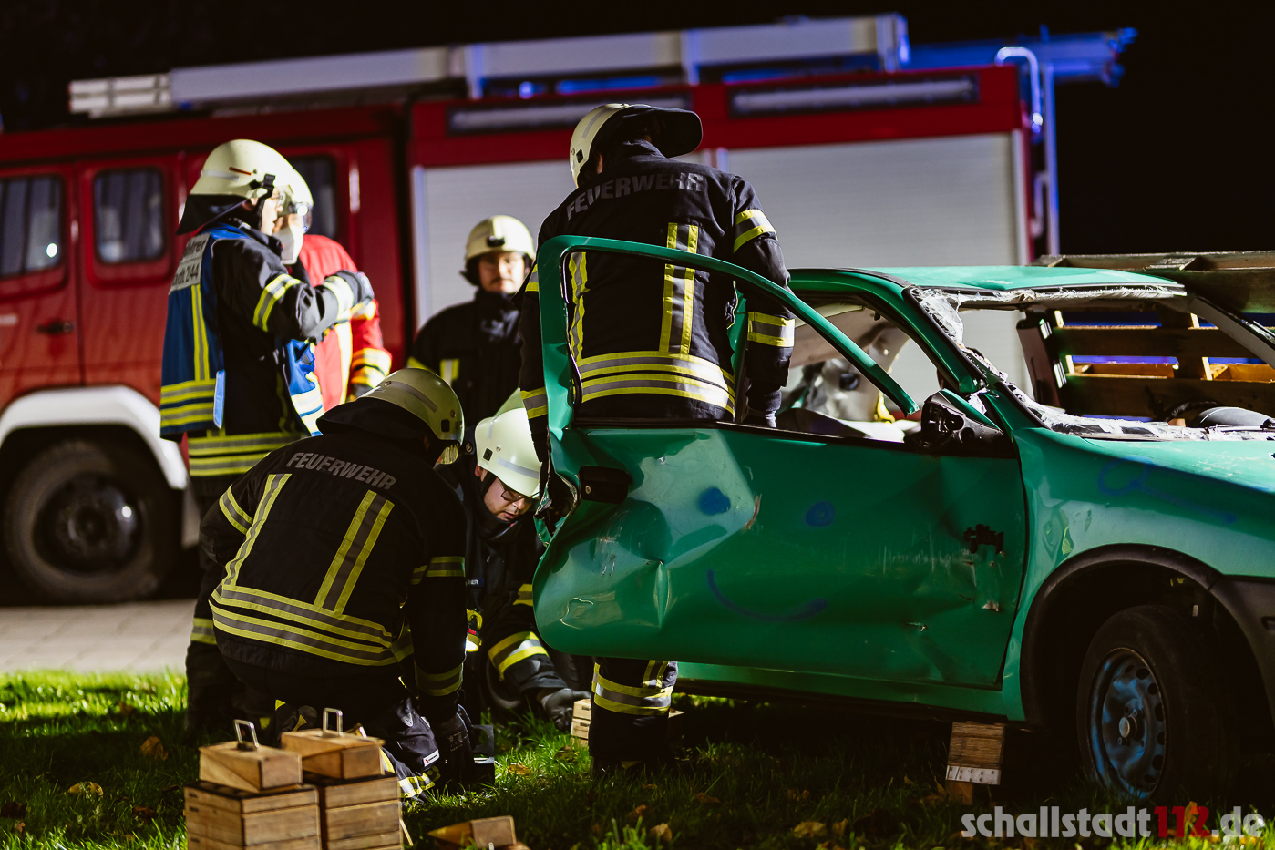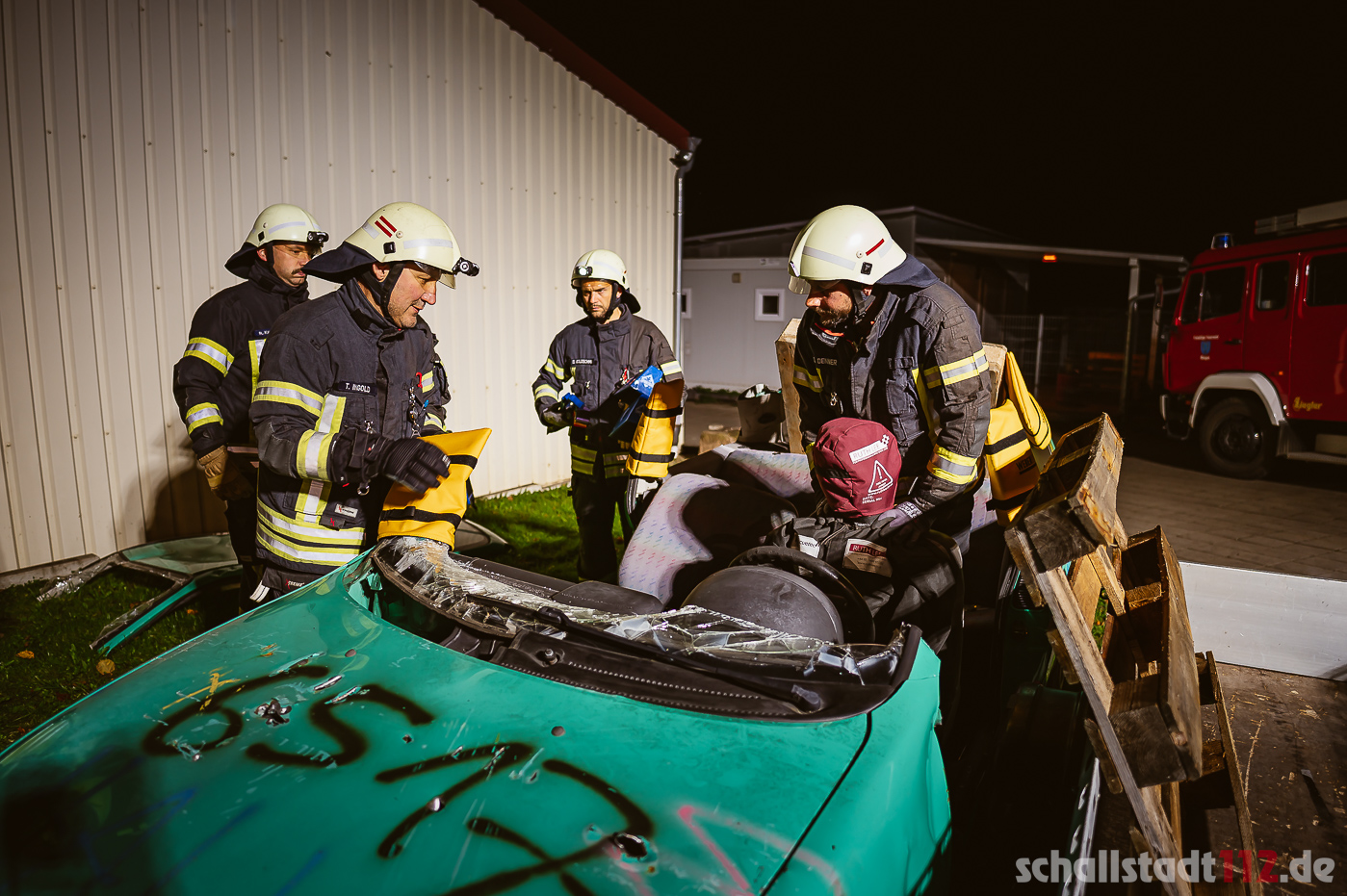 Parallel dazu übte die jeweils andere Gruppe die Rettung einer bewusstlosen Person aus einem stehenden PKW. Auch hierbei stand das sichere und schnelle Vorgehen im Vordergrund. Inklusive aller Details die zur Sicherung des Fahrzeuges und der Einsatzstelle notwendig sind.