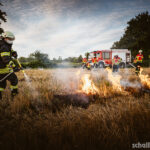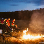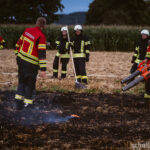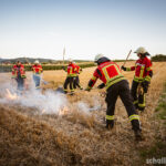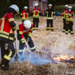 Zum Einsatz kamen Feuerpatschen, Schaufeln, Hacken sowie Löschrucksäcke. Jede Methode hat ihre eigenen Vorteile, je nach Ausbreitungsgeschwindigkeit und Intensität des Feuers. Durch die Nässe der letzten Wochen war der Boden noch feucht, die Stoppeln jedoch größtenteils abgetrocknet. Damit das Feuer während der Übung nicht zu schnell erlosch, wurde es regelmäßig mit Gasbrennern und Laubbläsern wieder angefacht.