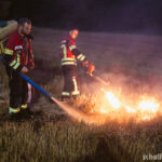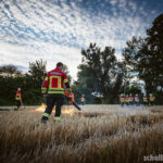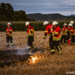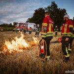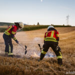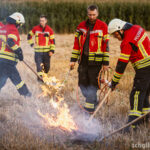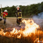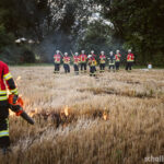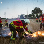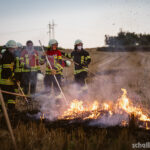 Am vergangenen Montag führten wir eine praxisnahe Übung zum Thema Vegetationsbrand durch. Hierfür wurde ein vorbereiteter Stoppelacker genutzt, auf dem an verschiedenen Stellen immer wieder kleinere Feuer entfacht wurden. Ziel war es, unterschiedliche Techniken zur Bekämpfung solcher Brände zu trainieren und die Ausrüstung im realitätsnahen Einsatz zu erproben.