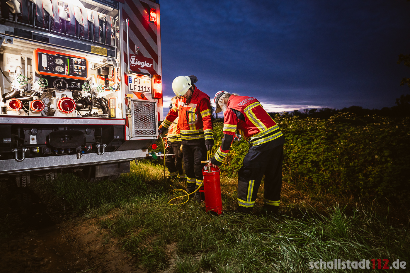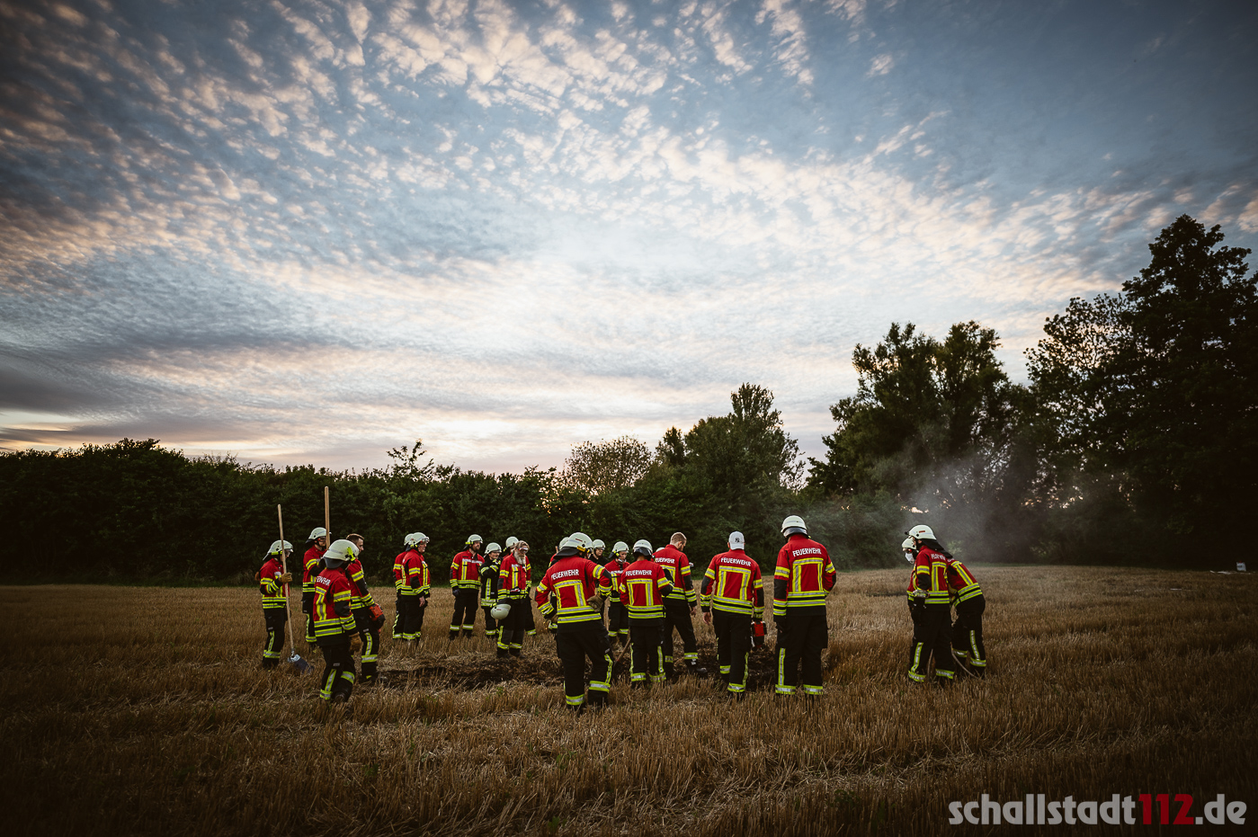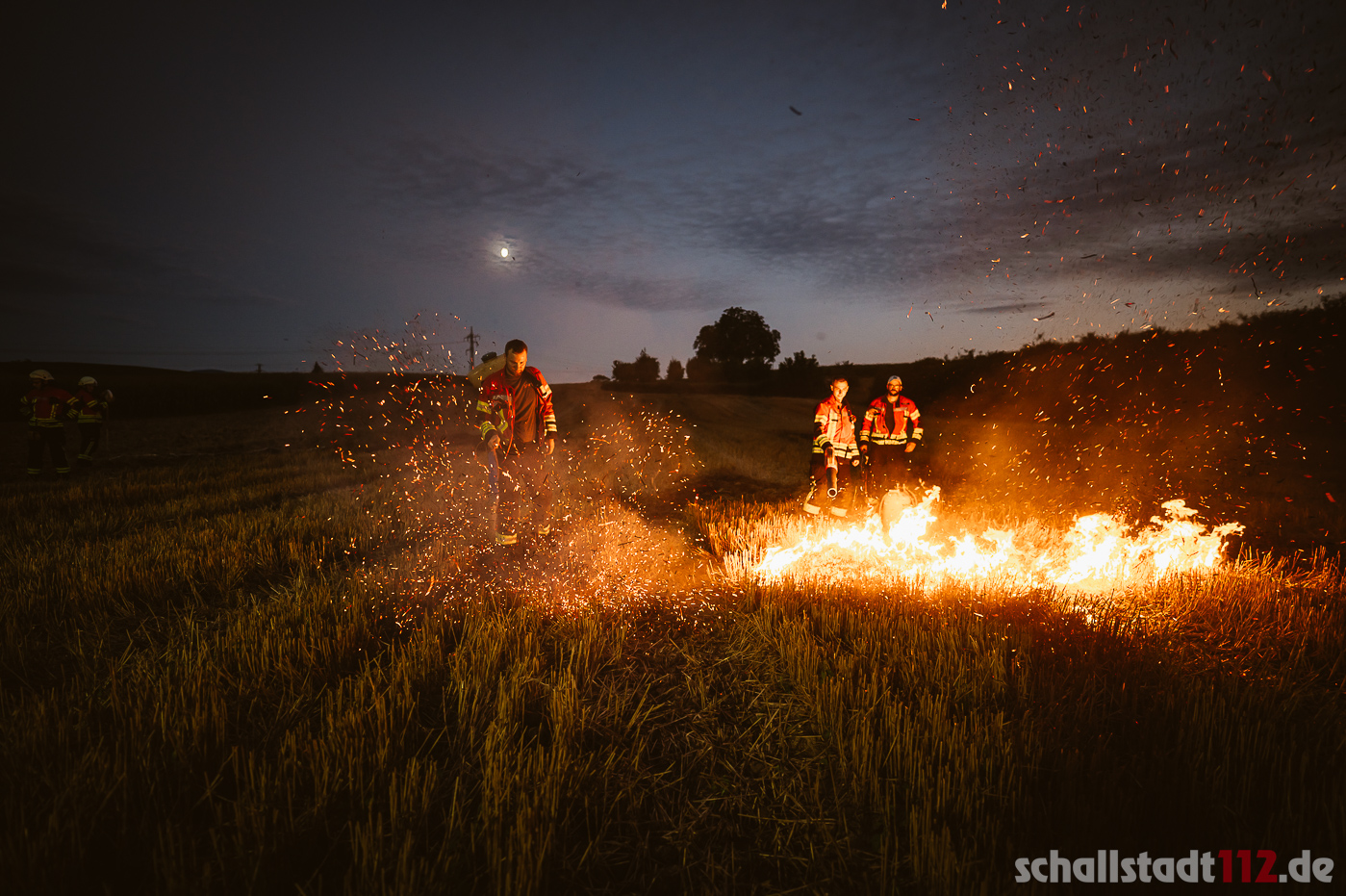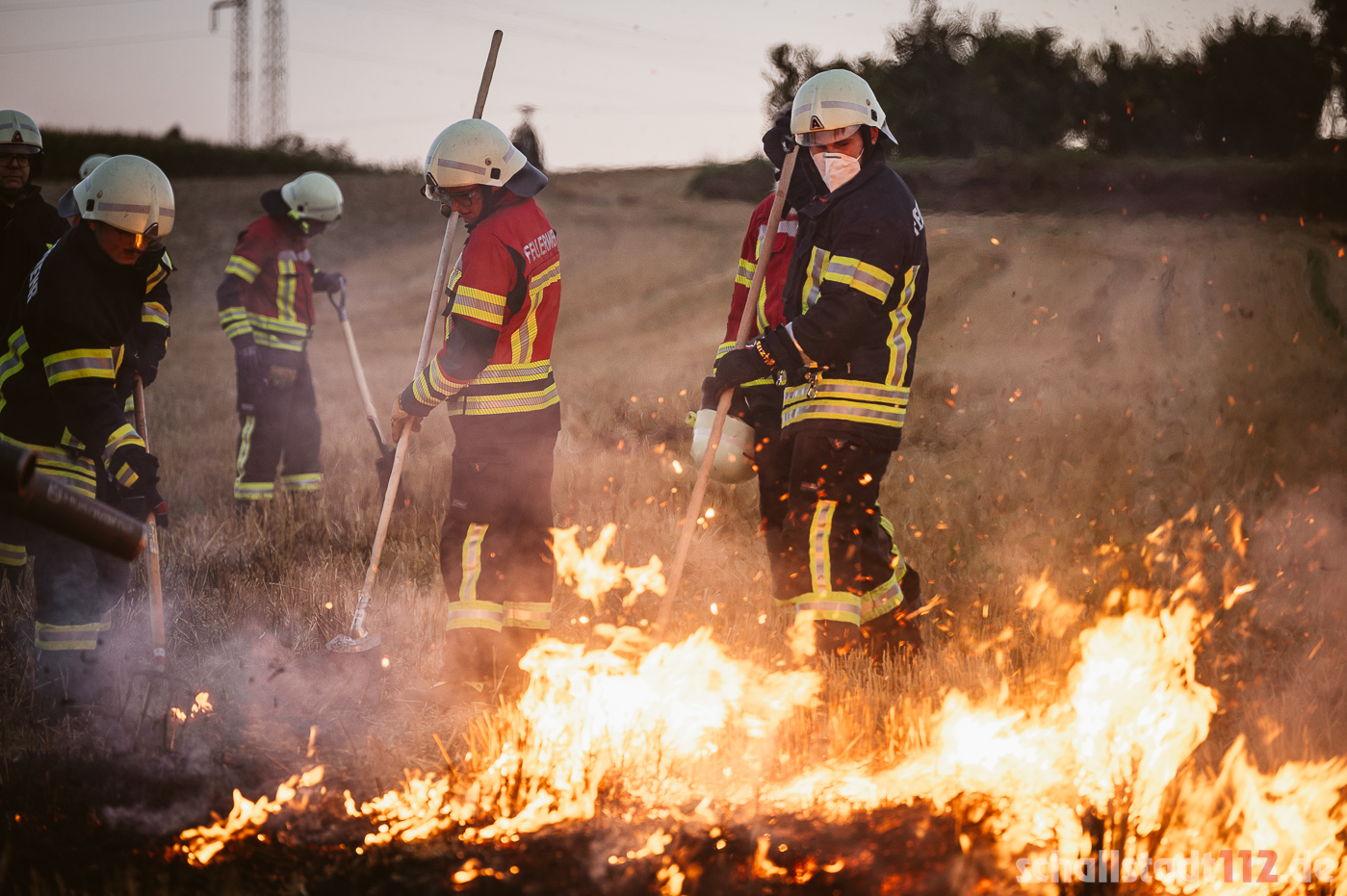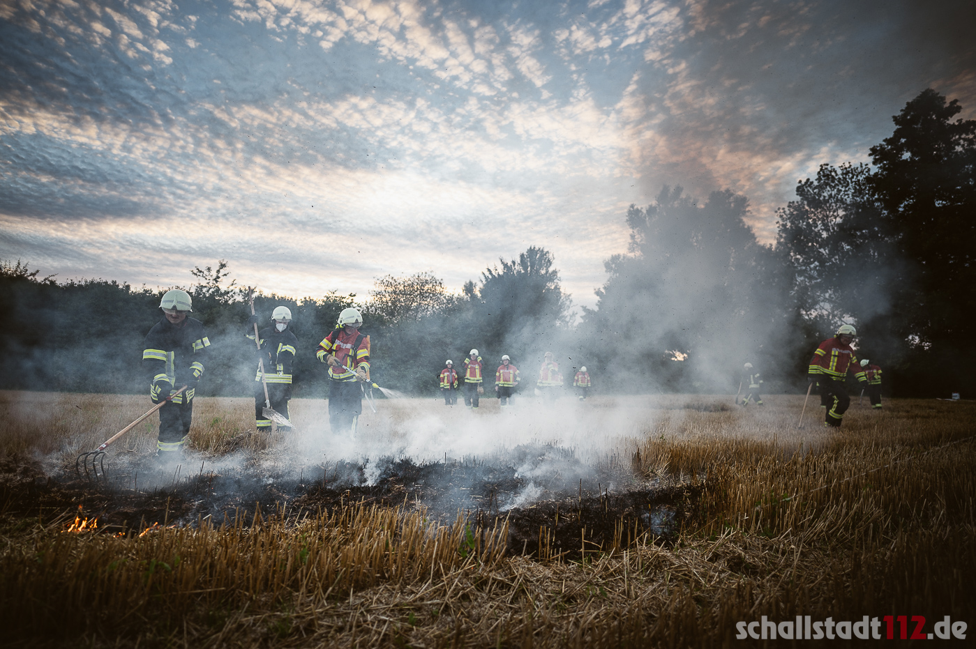 Zum Einsatz kamen Feuerpatschen, Schaufeln, Hacken sowie Löschrucksäcke. Jede Methode hat ihre eigenen Vorteile, je nach Ausbreitungsgeschwindigkeit und Intensität des Feuers. Durch die Nässe der letzten Wochen war der Boden noch feucht, die Stoppeln jedoch größtenteils abgetrocknet. Damit das Feuer während der Übung nicht zu schnell erlosch, wurde es regelmäßig mit Gasbrennern und Laubbläsern wieder angefacht.