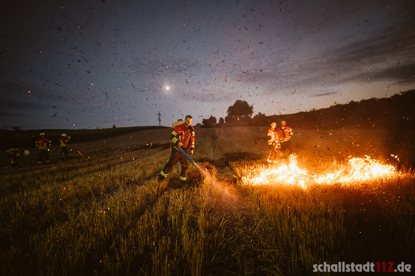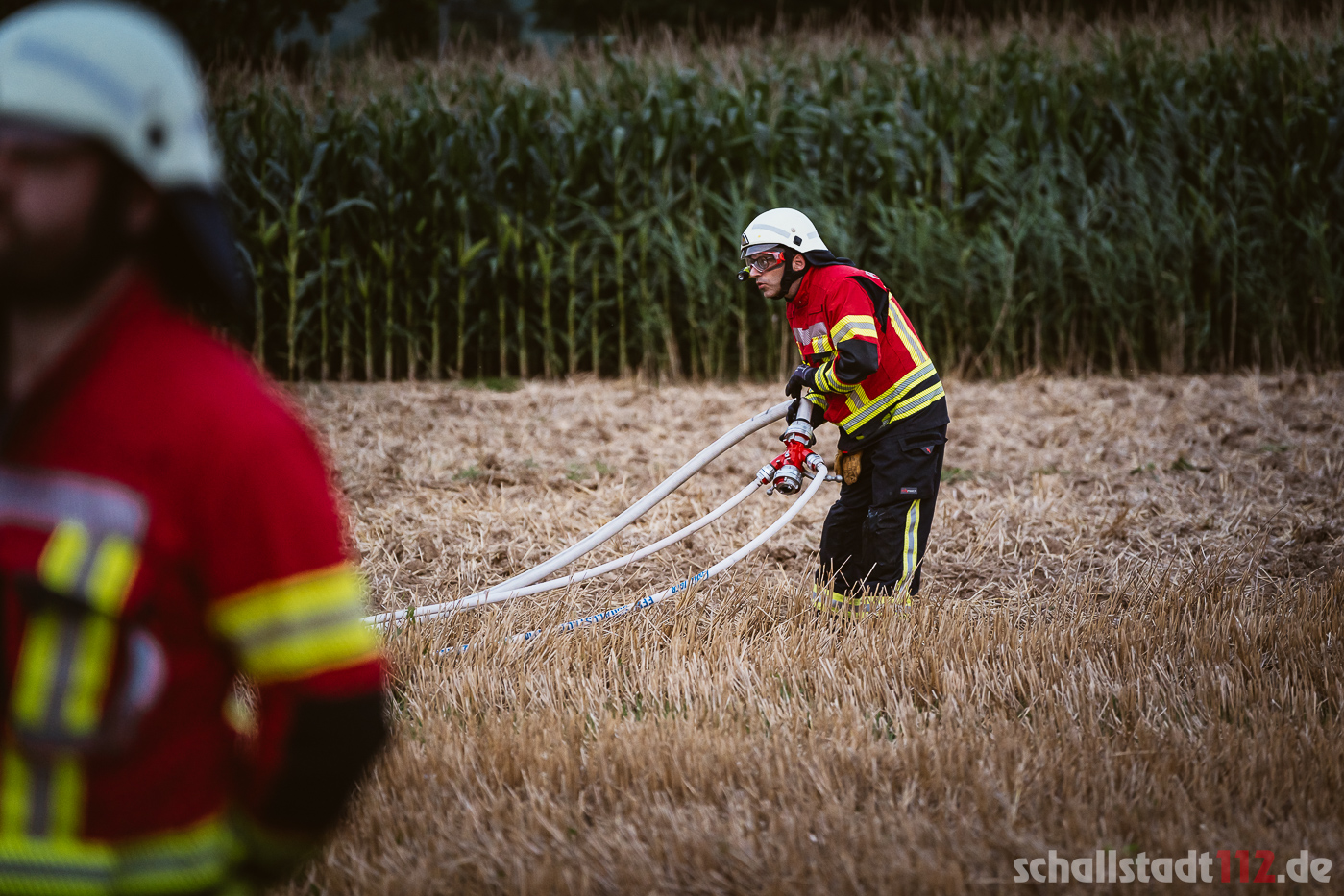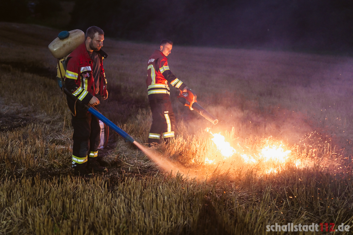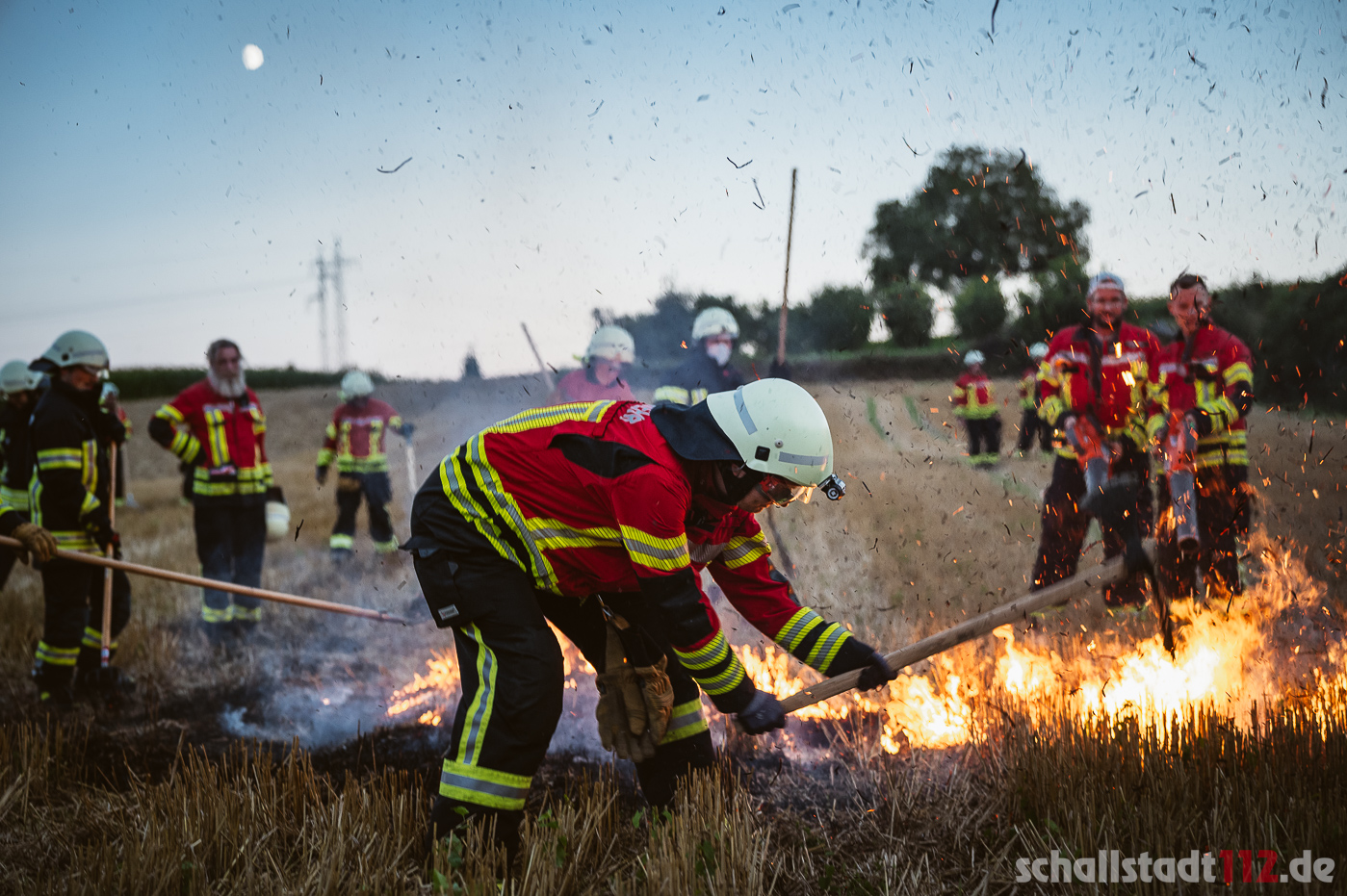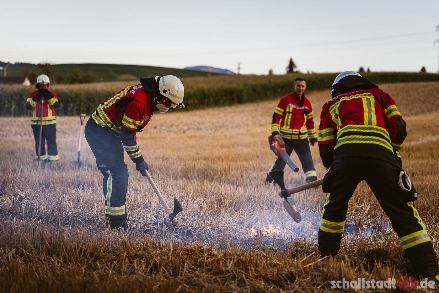 Zum Einsatz kamen Feuerpatschen, Schaufeln, Hacken sowie Löschrucksäcke. Jede Methode hat ihre eigenen Vorteile, je nach Ausbreitungsgeschwindigkeit und Intensität des Feuers. Durch die Nässe der letzten Wochen war der Boden noch feucht, die Stoppeln jedoch größtenteils abgetrocknet. Damit das Feuer während der Übung nicht zu schnell erlosch, wurde es regelmäßig mit Gasbrennern und Laubbläsern wieder angefacht.